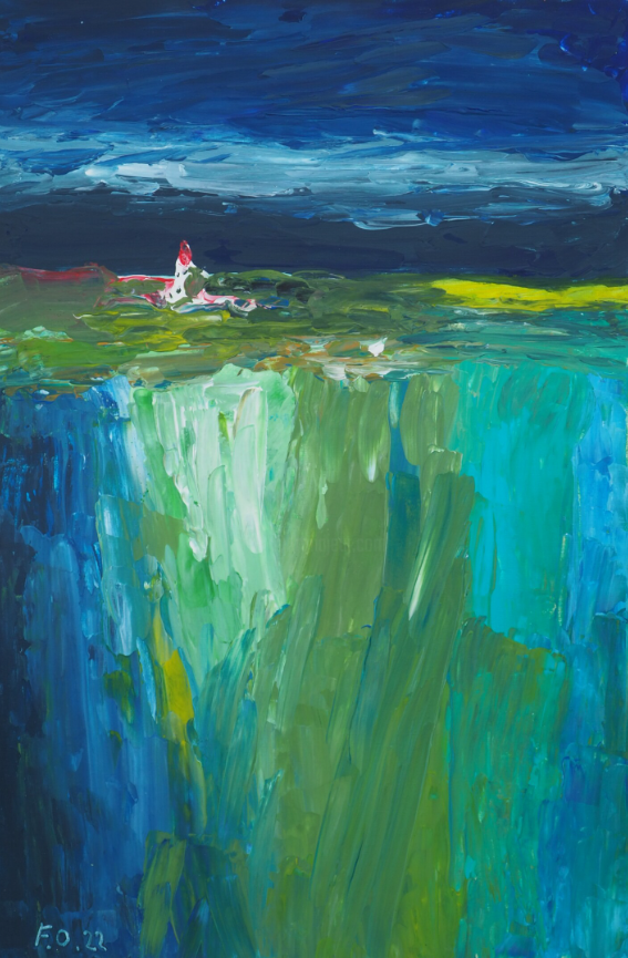 Dieses Bild entstand in einem Moment innerer Bewegung – ein Dialog zwischen Wind und Welle. Die Farben prallen aufeinander, wie Gedanken, die sich noch nicht gesetzt haben. Zwischen Meer und Himmel öffnet sich der Raum, in dem Stille und Sturm zugleich existieren.